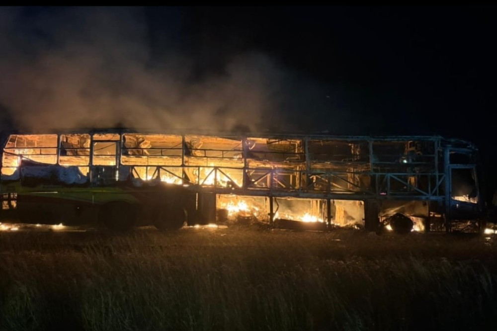 ಘೋರ ದುರಂತ: ಬಸ್ ಗೆ ಬೆಂಕಿ, 25 ಮಂದಿ ಸಜೀವ ದಹನ