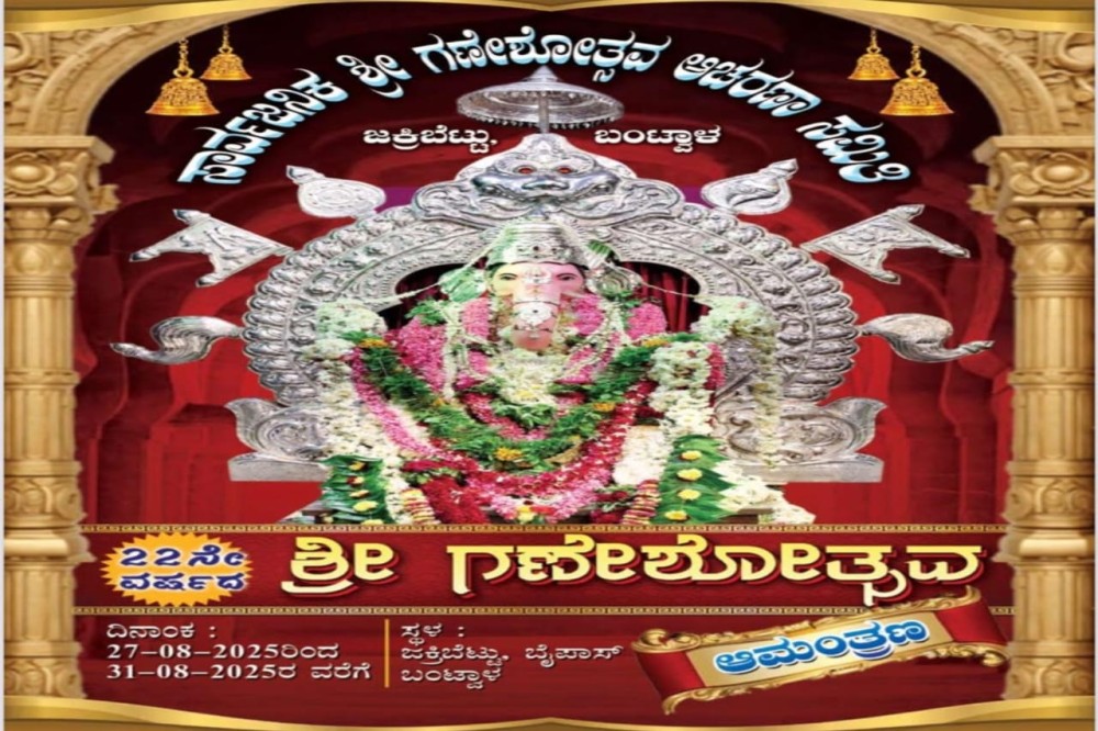 ಬಂಟ್ವಾಳ ಜಕ್ರಿಬೆಟ್ಟಿನಲ್ಲಿ 22ನೇ ಸಾರ್ವಜನಿಕ ಶ್ರೀ ಗಣೇಶೋತ್ಸವ – ಸಾಮಾಜಿಕ…