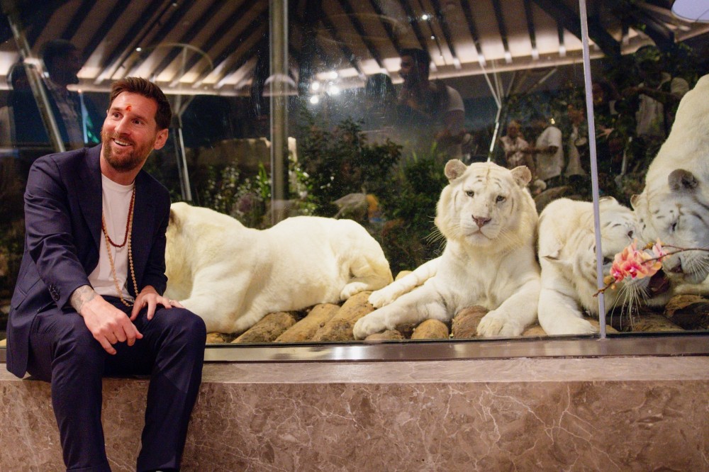ಲಿಯೋನಲ್ ಮೆಸ್ಸಿ ಹುಲಿ ಮತ್ತು ಇನ್ನಿತರ ಪ್ರಾಣಿಗಳ ಜೊತೆ ತಮ್ಮ ಫೋಟೋ ಕ್ಲಿಕ್ಕಿಸಿದರು.