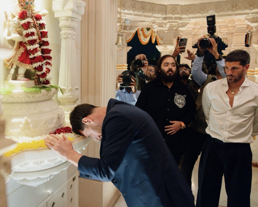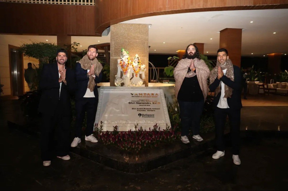 ಮೆಸ್ಸಿ ಮತ್ತು ಅನಂತ್ ಅಂಬಾನಿ ಗಣಪತಿ ದೇವರ ಮೂರ್ತಿಯ ಜೊತೆ ನಿಂತು ಪ್ರಾರ್ಥನೆ ಮಾಡಿದರು.